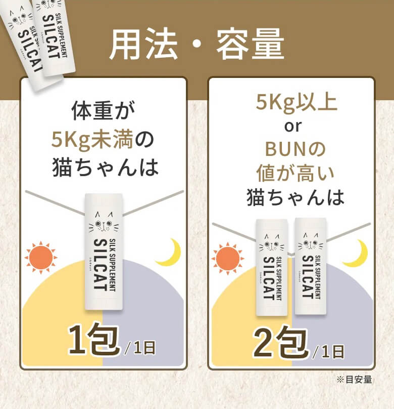 5Kg以上やBUN値が高い猫ちゃんは、2袋/日(朝・夜)