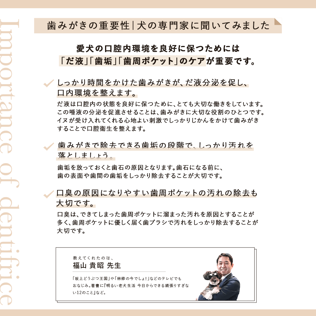 犬種、ケアしたい部位にあわせた、こだわりの犬用歯ブラシ。