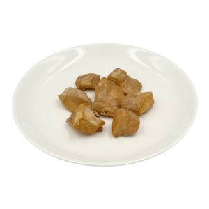 フリーズドライなのでそのまま与えたり、お湯につけて戻すと柔らかくより香りもたちます。