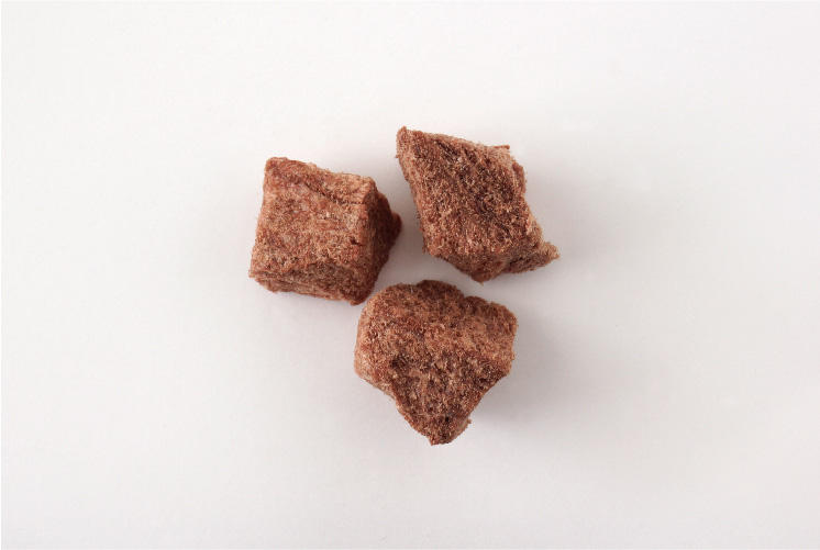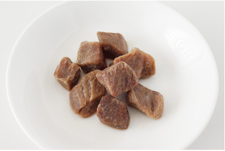 栄養はそのまま。お湯で戻すと生肉をボイルしたような香りと食感が楽しめます。