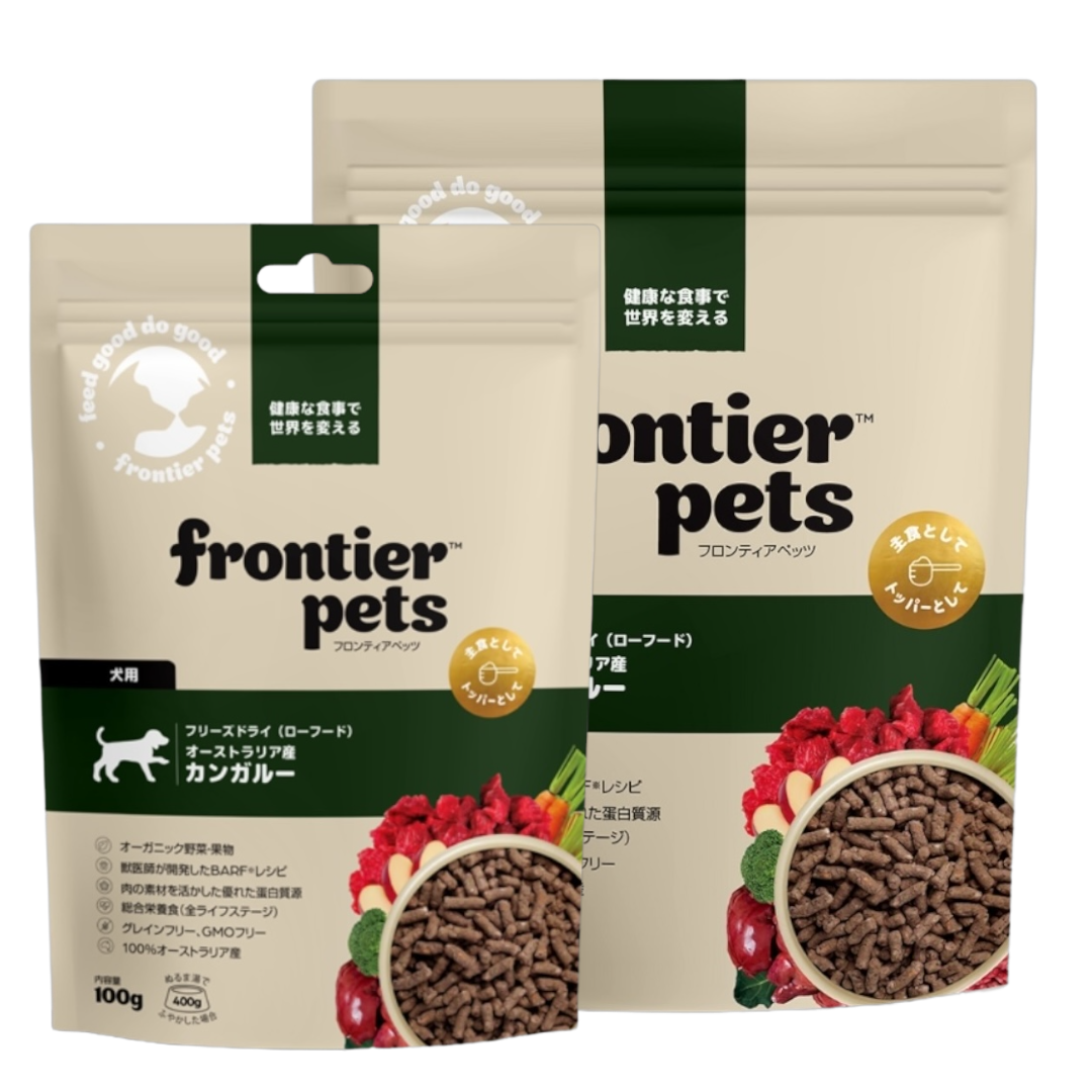 フロンティアペッツのフードは、完全放牧の動物性タンパクと認定オーガニックの野菜から作られており、ペットに良いだけでなく、動物福祉と地球環境にも貢献しています。