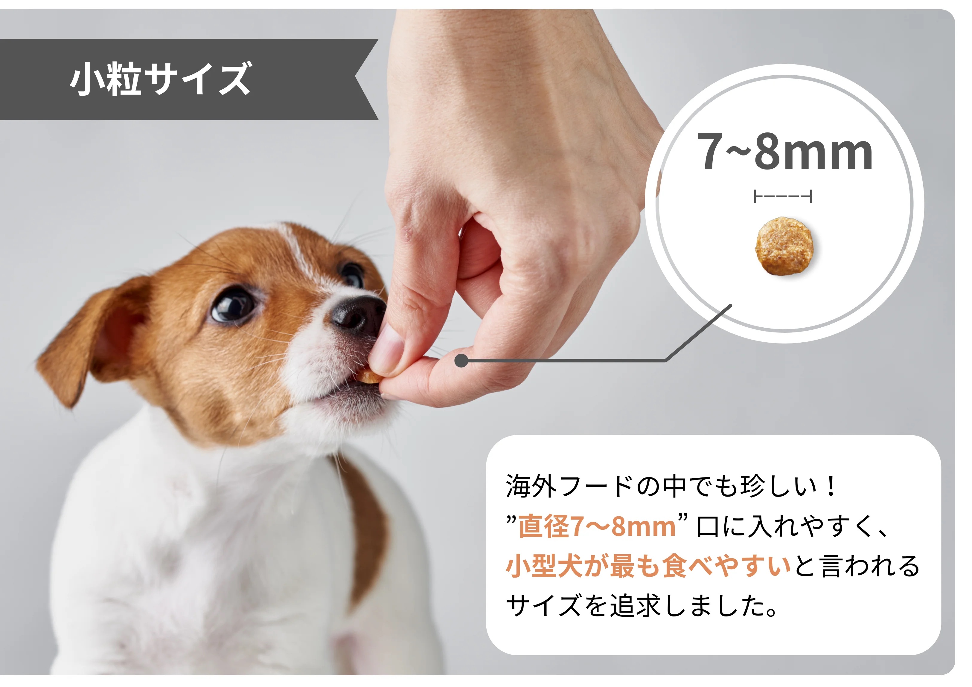 小型犬が食べやすい小粒サイズ。