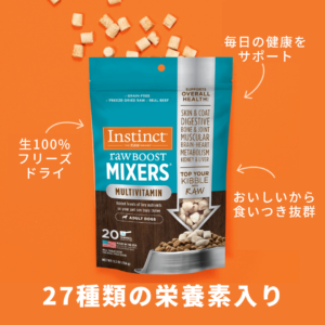 成犬期の犬のためにカスタマイズされた、インスティンクトの認定獣医栄養士が選んだ27種類の栄養素を含むマルチビタミン。