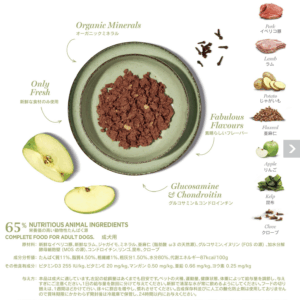 「より自然に、より新鮮に。」という理念のもと、全てのレシピに100%新鮮な生肉と天然素材を使用し、人工着色料・保存料・ミートミール・副産物を一切使わずに作られています。