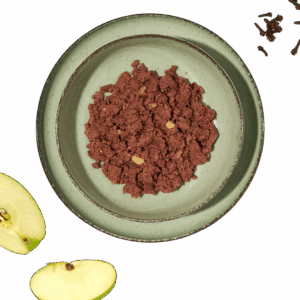 リンゴやジャガイモの自然な甘みと食物繊維が腸内環境を整え、亜麻仁が皮膚と被毛の健康を守ります。