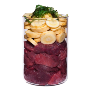 ヒューマングレード(人間用食品グレード)の材料のみが使用されており、合成添加物を使用せずお肉屋さんが選んだ1種類の美味しいお肉と1種類の野菜、亜麻仁油を使用しています。