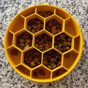 加えて、ハニコームEボウルを使うことで、犬が楽しむことができ、留守番中の不安や退屈からくる問題行動を減らす助けにもなります。