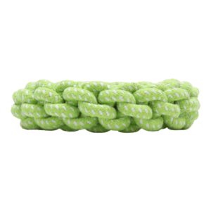 「ノッティー ビッグリング」は、明るいグリーンのロープをドーナツ状に編んであります。