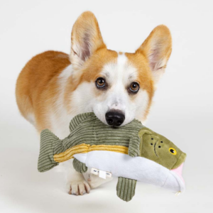 スクイーカーを押すと尾がパタパタ動き、犬の興味を惹きつけます。