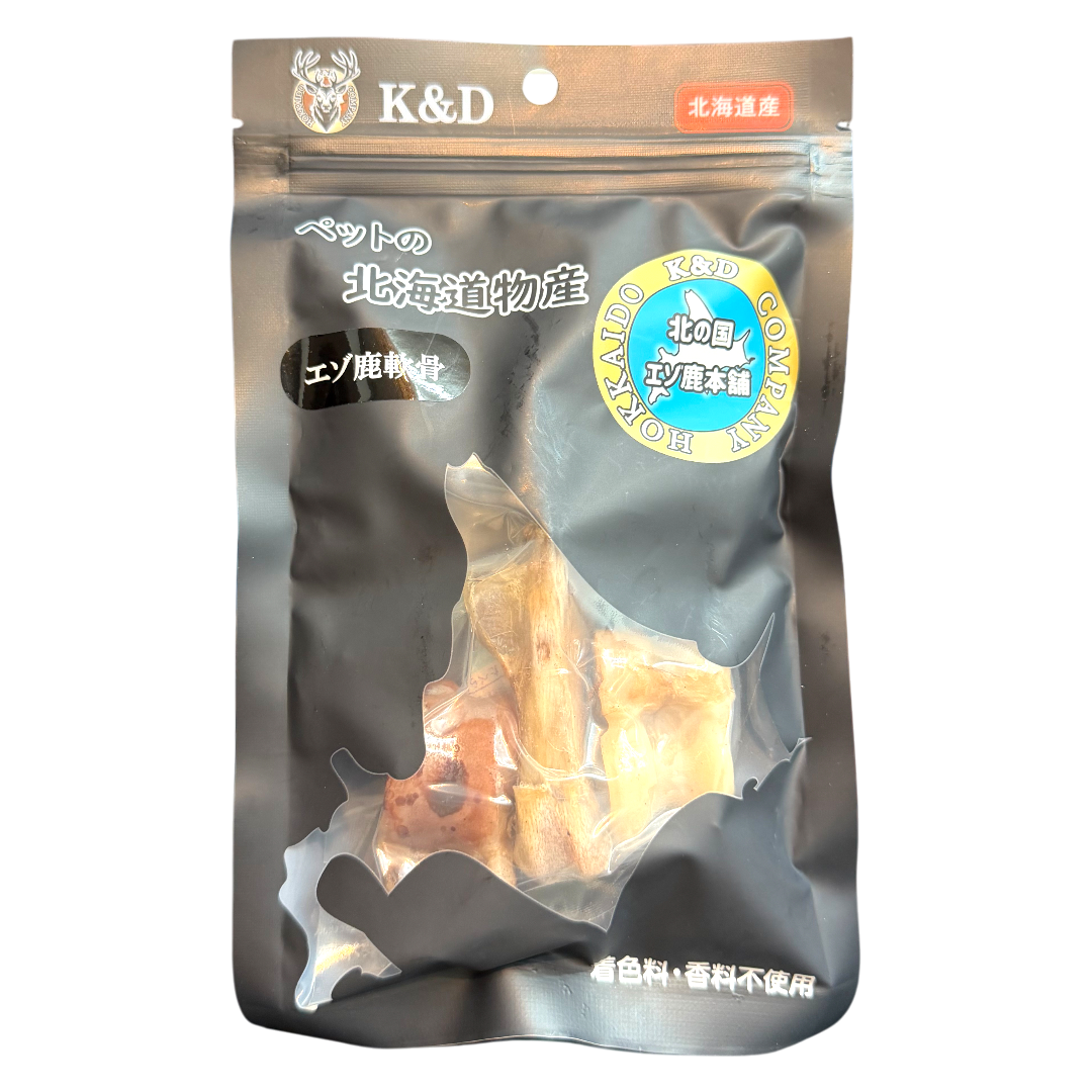 エゾ鹿軟骨は、北海道産エゾ鹿の中でも柔軟で弾力のある部位を厳選し、時間をかけて丁寧に処理・乾燥させた高たんぱく・低脂肪の天然おやつです。