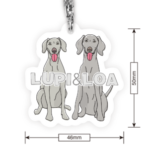 ワイマラナーのLUPI(るぴ)とLOA(ろあ)のオリジナルアクリルキーホルダーです。
