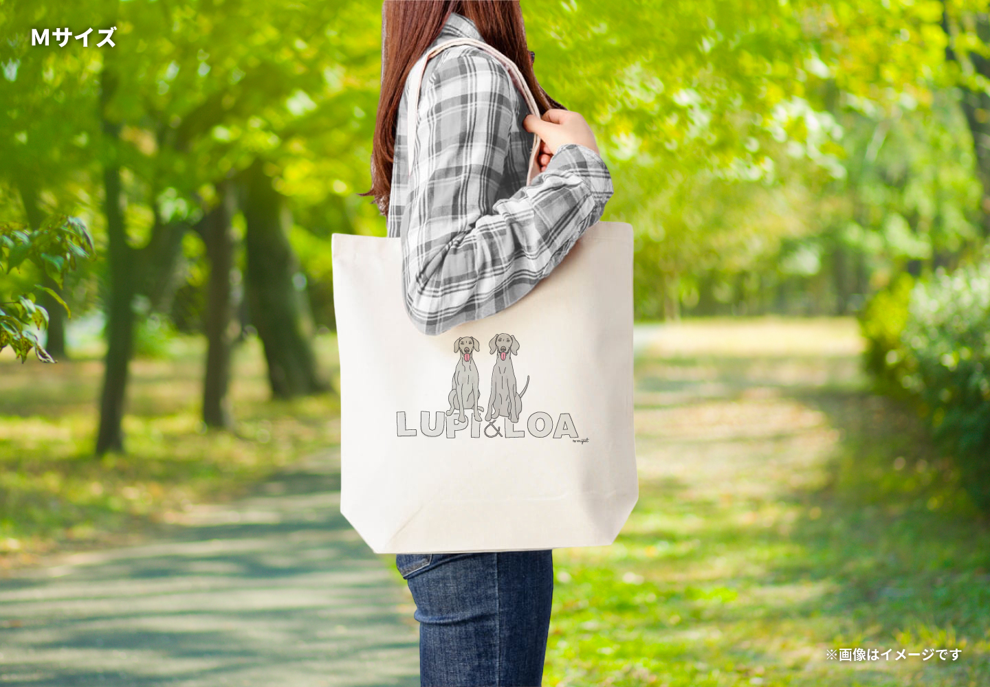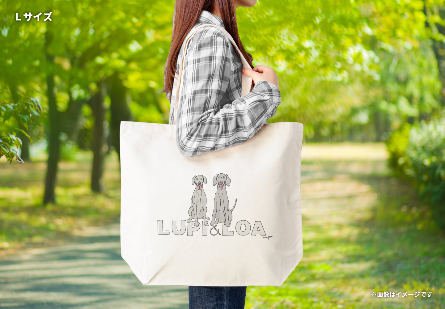 ワイマラナーのLUPI(るぴ)とLOA(ろあ)のオリジナルトートバッグです。
